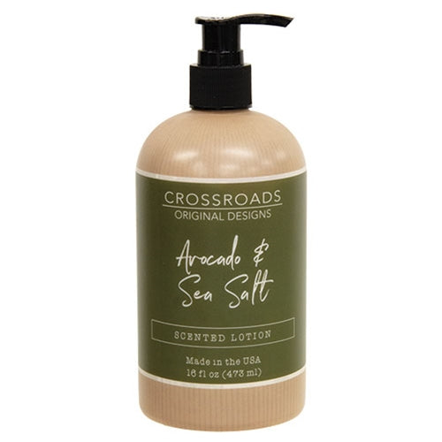 The Avocado & Sea Salt Lotion is a bottle of everyday moisturizing lotion with a simple pump attachment lid. The lotion features the fresh scent of creamy avocado layered with pink sea salt, perfumed agave, and a hint of citrus. This lotion makes a great addition to a bathroom or kitchen sink for everyday use. Measures 16 fluid ounces.